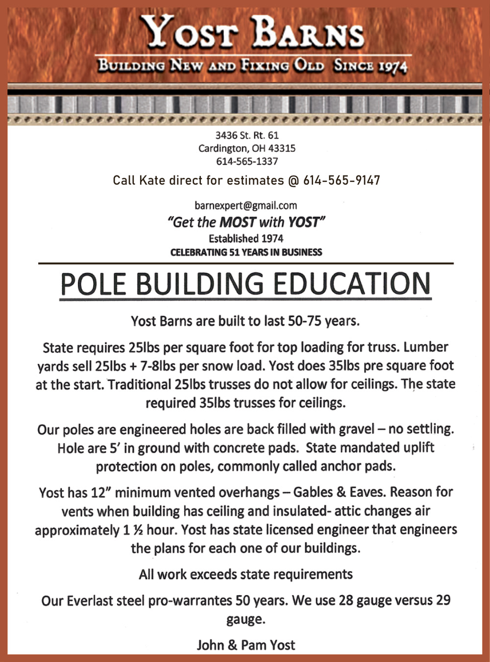 Oct 29, 2025. Yost Barns Construction Ads from The Delaware Gazette