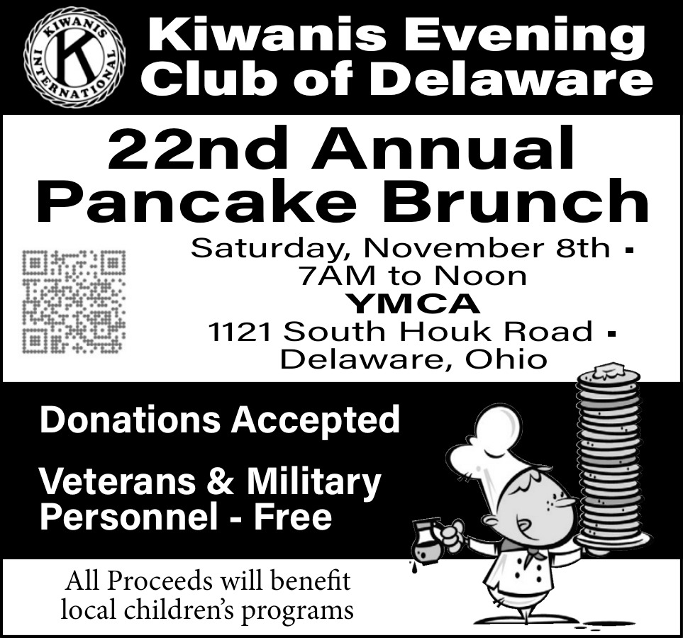 Ads for 22nd Annual Pancake Brunch (November 8, 2025) in Delaware, OH