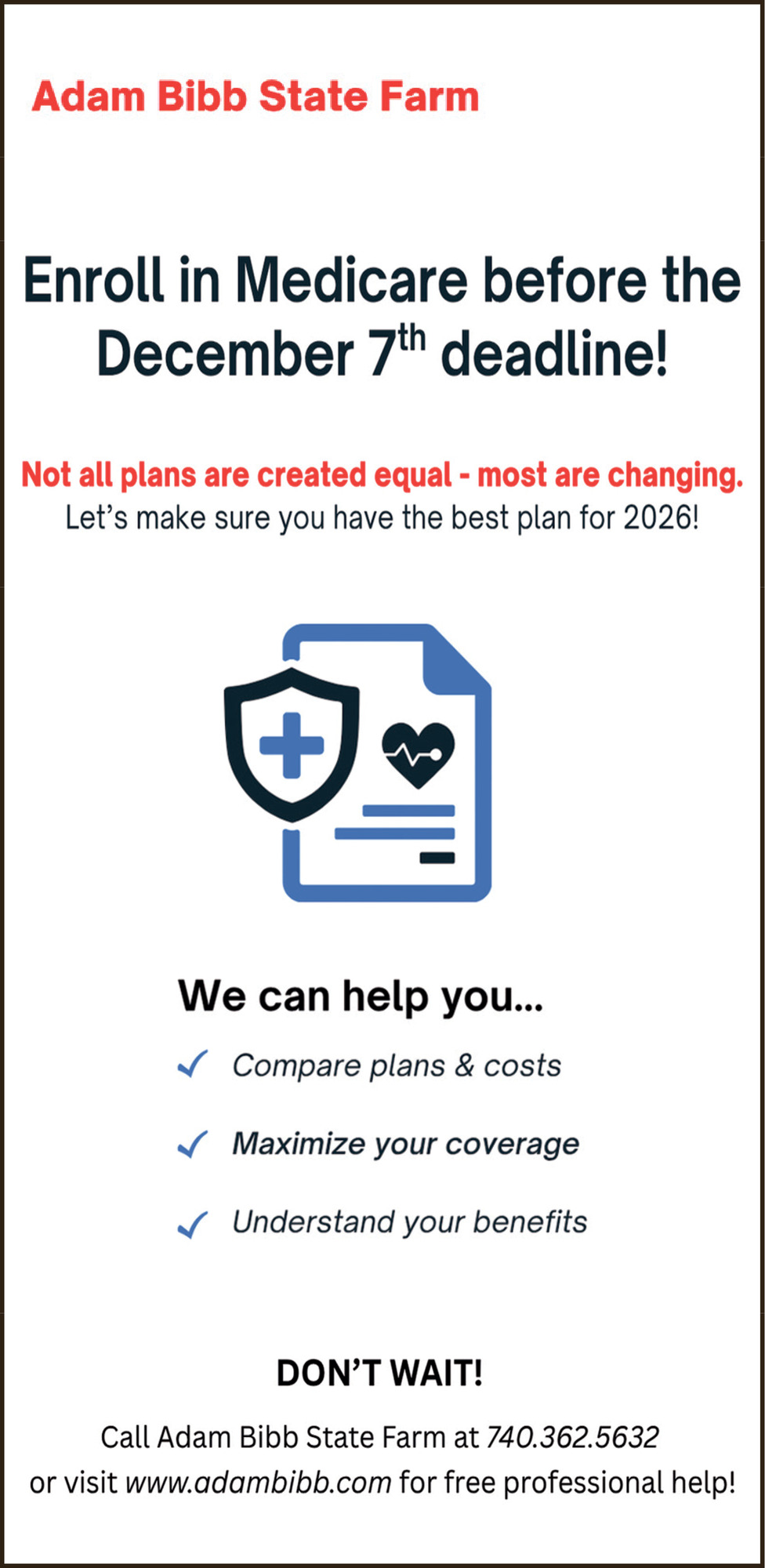 Nov 05, 2025. Adam Bibb - State Farm Finance & Insurance Ads from The Delaware Gazette