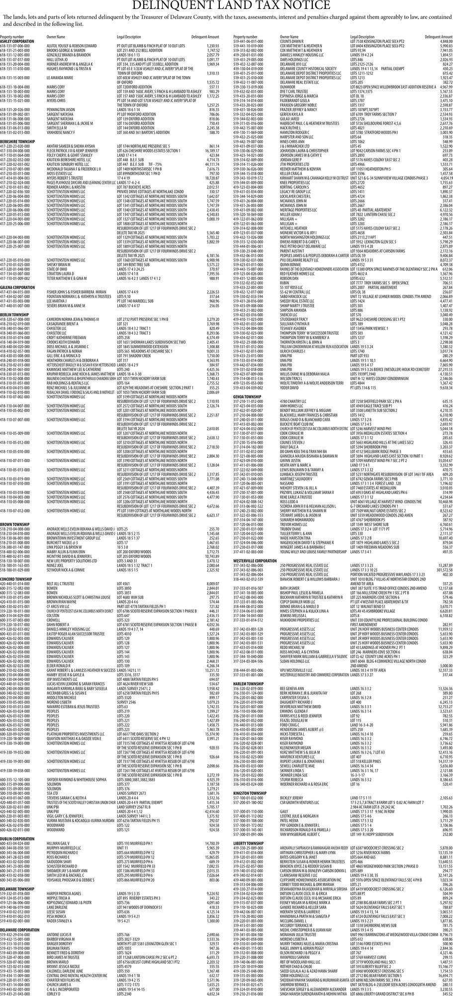 Nov 26, 2025. Delaware County Government Ads from The Delaware Gazette